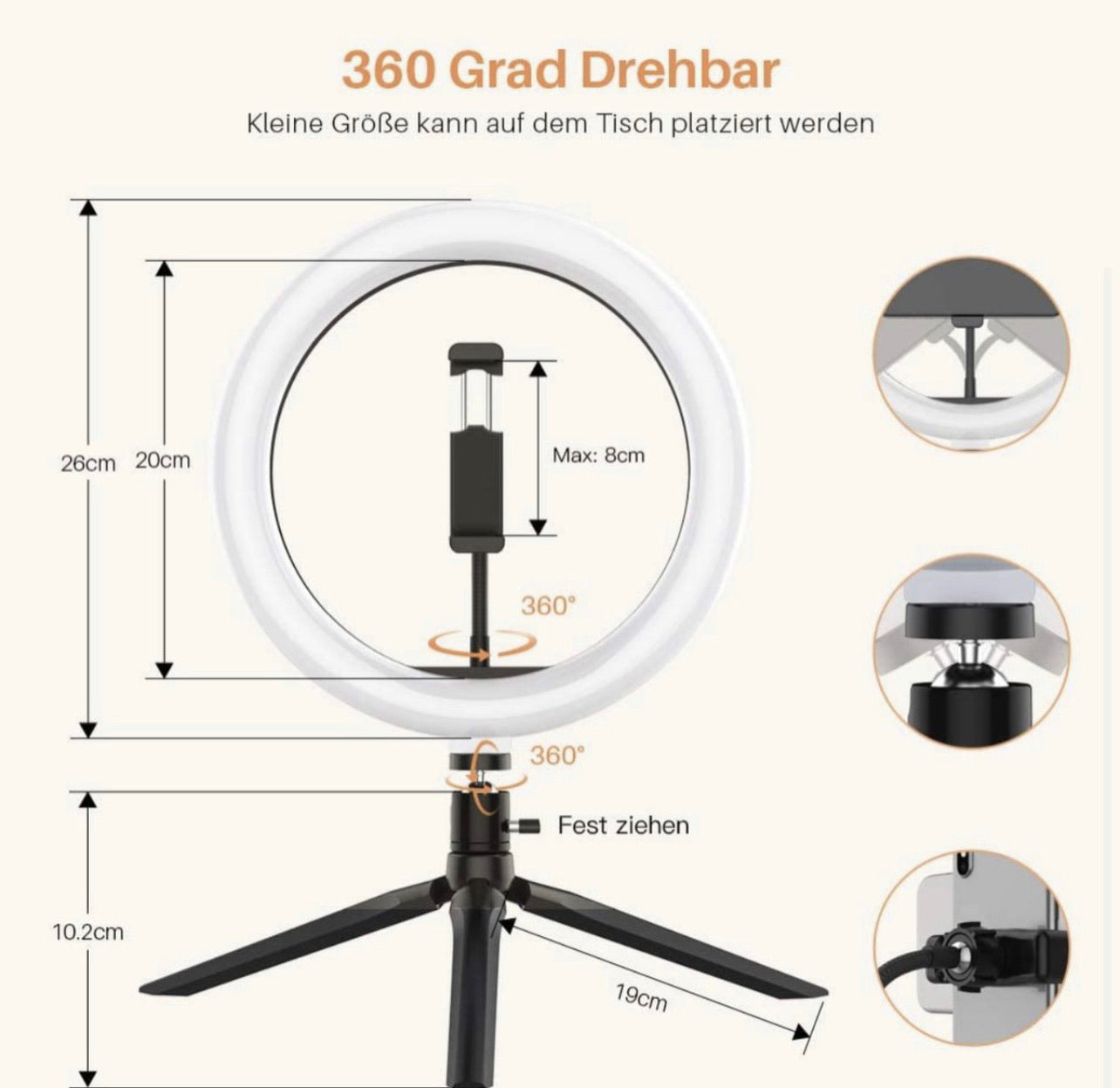 Stativlänge: 20 cm im zusammengeklappten Zustand.