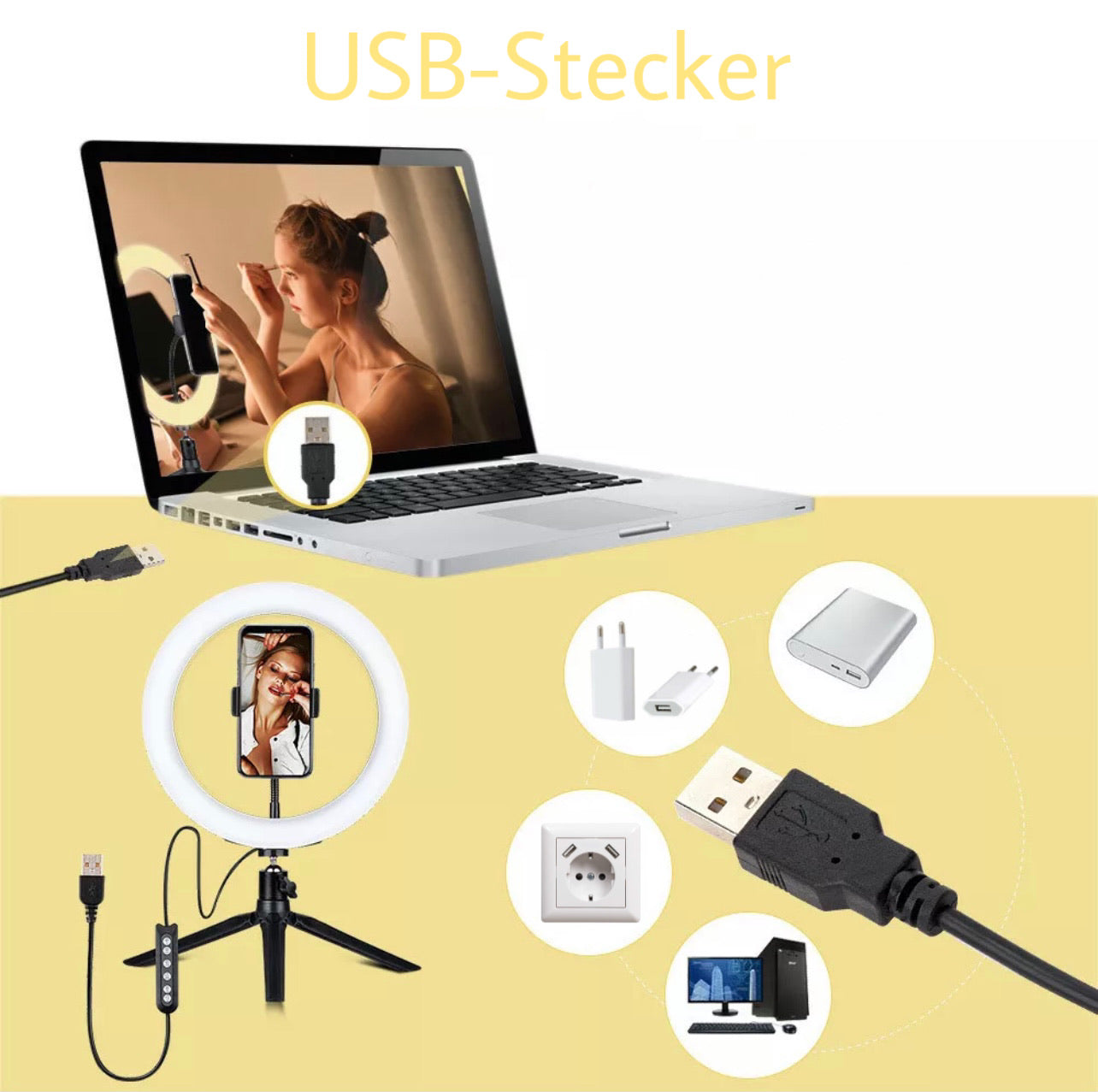 1*RGB Ringlicht (mit Handyhalter).